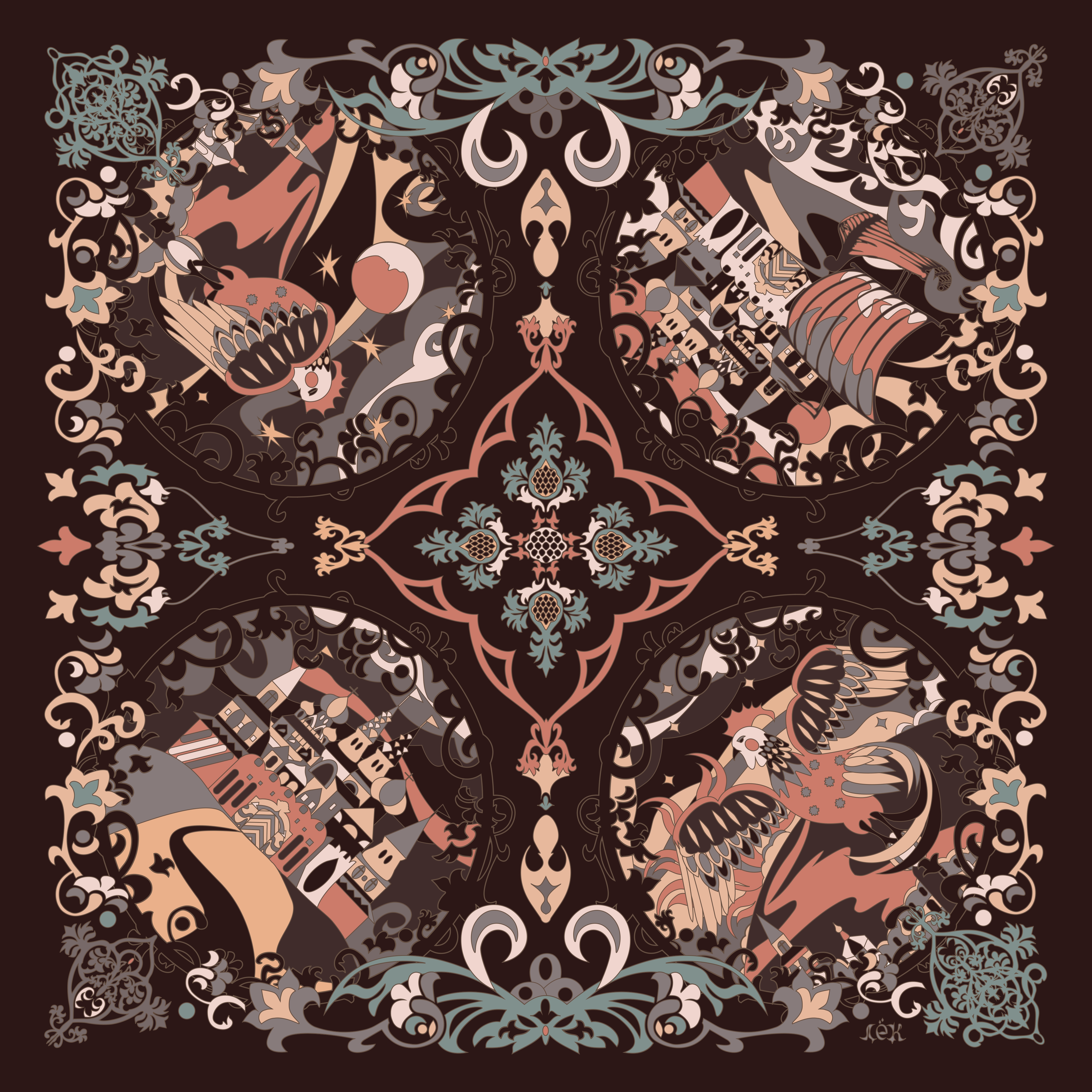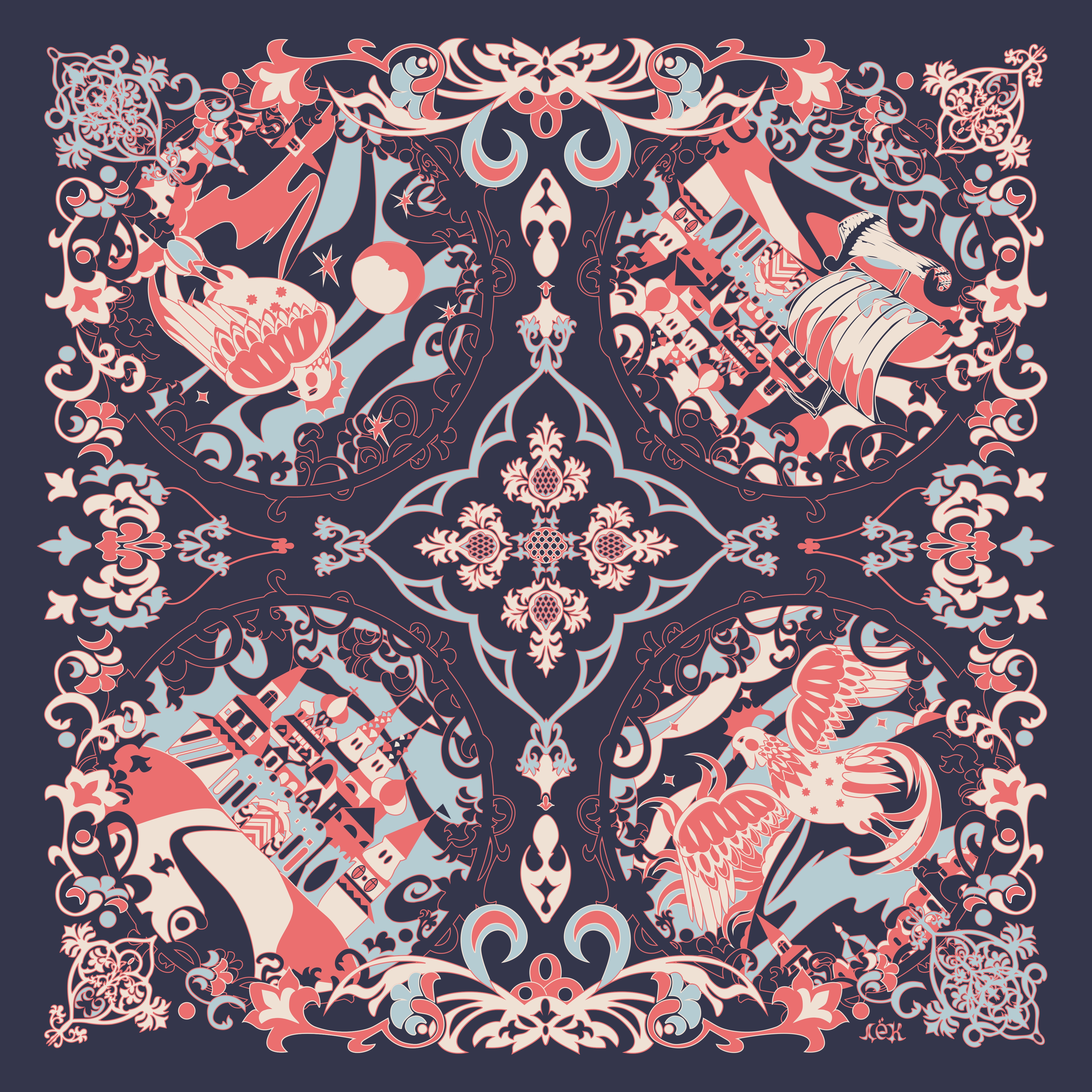 Узоры платков-сказок основанны на традиционных русских орнаментах, вдохновлены иллюстрациями И. Я. Билибина .