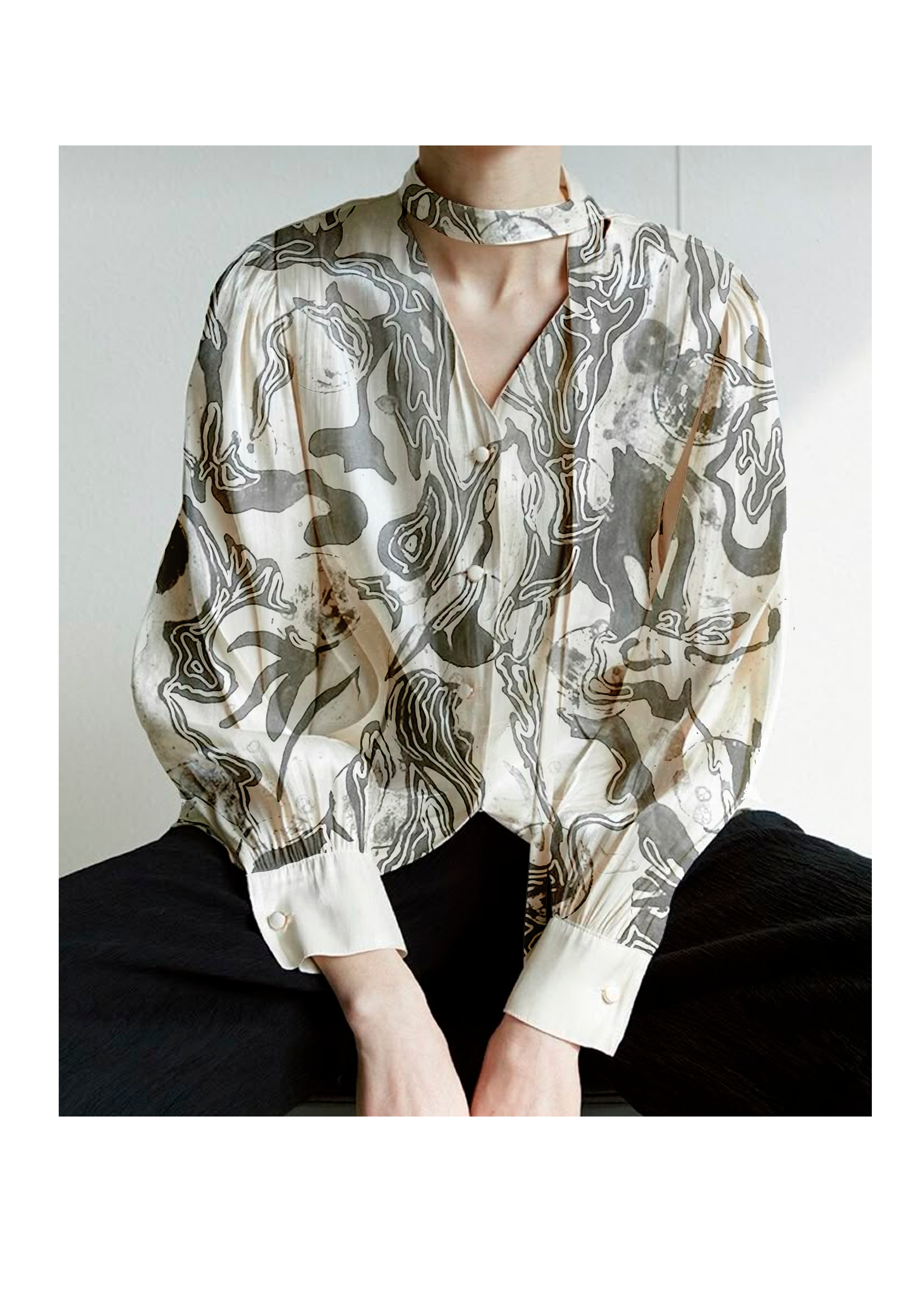 В работе над коллекцией были использованы документы из архивов выставок, посвященных хохломе, иллюстративные материалы предметов промысла из государственного каталога и отдельные тематические альбомы. Новое прочтение декоративно-прикладного искусства заключается в изменении цветовой гаммы на природные и нейтральные оттенки - апсидно-серый, градация бежевого, синевато-черный, жемчужно-белый, где акцентом служит контраст по цвето-тону. Отказ от традиционного колорита обусловлен стремлением интегрировать мотивы в современный текстиль. Узоры хохломы остались золотыми, однако предоставлены варианты композиций, где появился холодный отлив. В проектировании изделий применялся градиент с целью создания имитации кистевой росписи, эффекта блеска, тем самым сохранив истоки трепетного изготовления предметов знаменитого промысла.