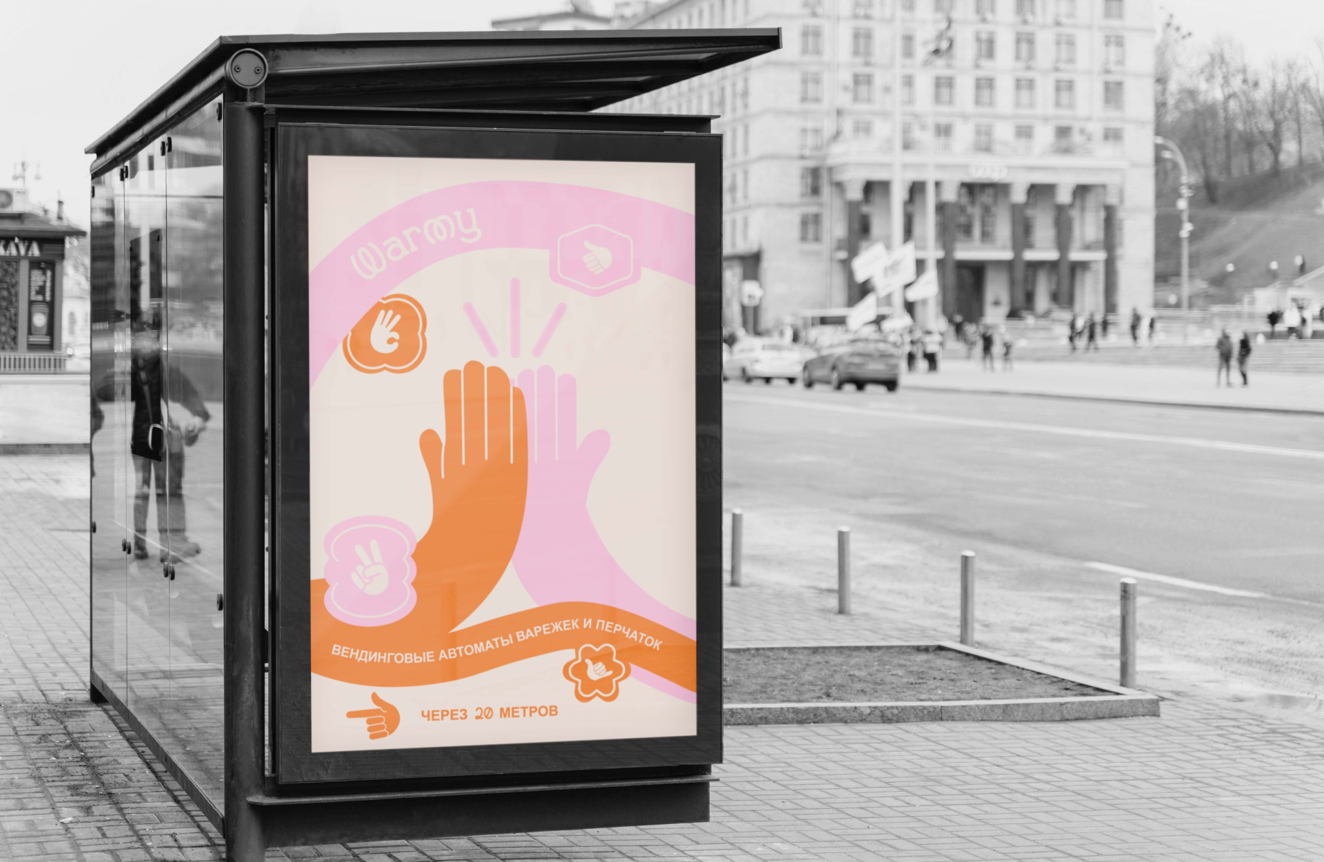 Warmy — это вендинговые автоматы с варежками и перчатками, которые находятся у метро, остановок общественного транспорта, у парков и в торговых центрах.